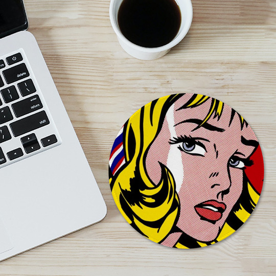 Roy Lichtenstein - Girl With Hair Ribbon : Round Mousepad