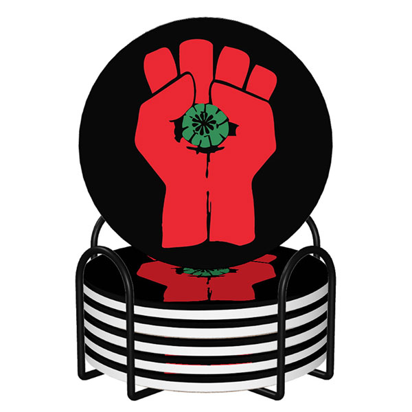 Gonzo Fist - Hunter S. Thompson : Set of 6 Round Ceramic Coasters with metal stand
