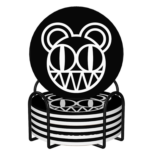 Radiohead : Set of 6 Round Ceramic Coasters with metal stand