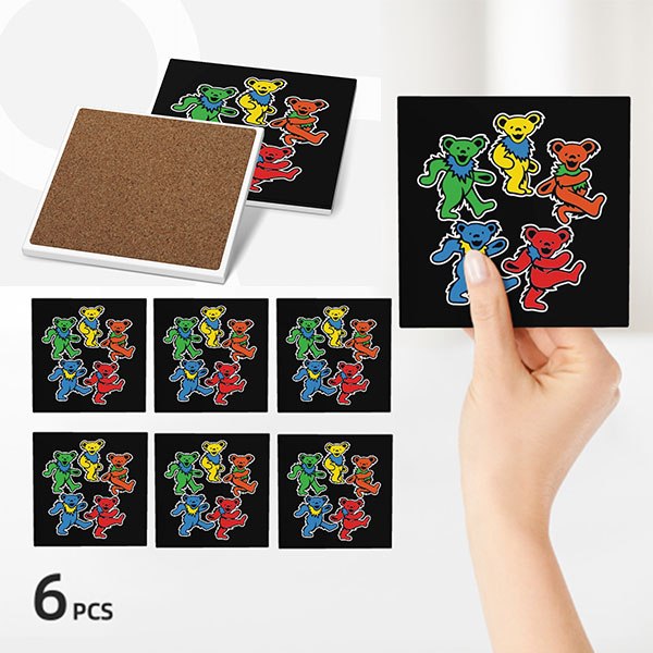 The Grateful Dead - Dancing Bears / Marching Bears : Set of 6 Square Ceramic Coasters with metal stand