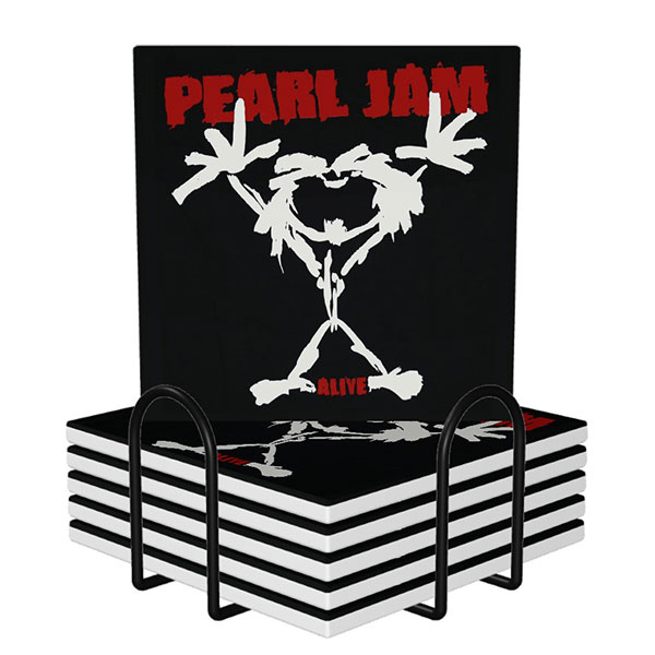 Pearl Jam - Stickman - Alive : Set of 6 Square Ceramic Coasters with metal stand