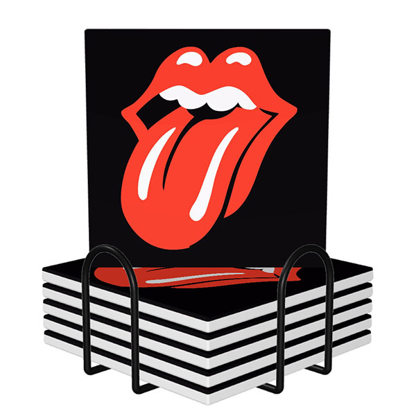 The Rolling Stones - Tongue and Lips : Set of 6 Square Ceramic Coasters with metal stand